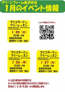 ◯ブリコラージュフリーレッスン 1/26(月) フリーレッスンとなっております。鉢の持ち込みが可能です。