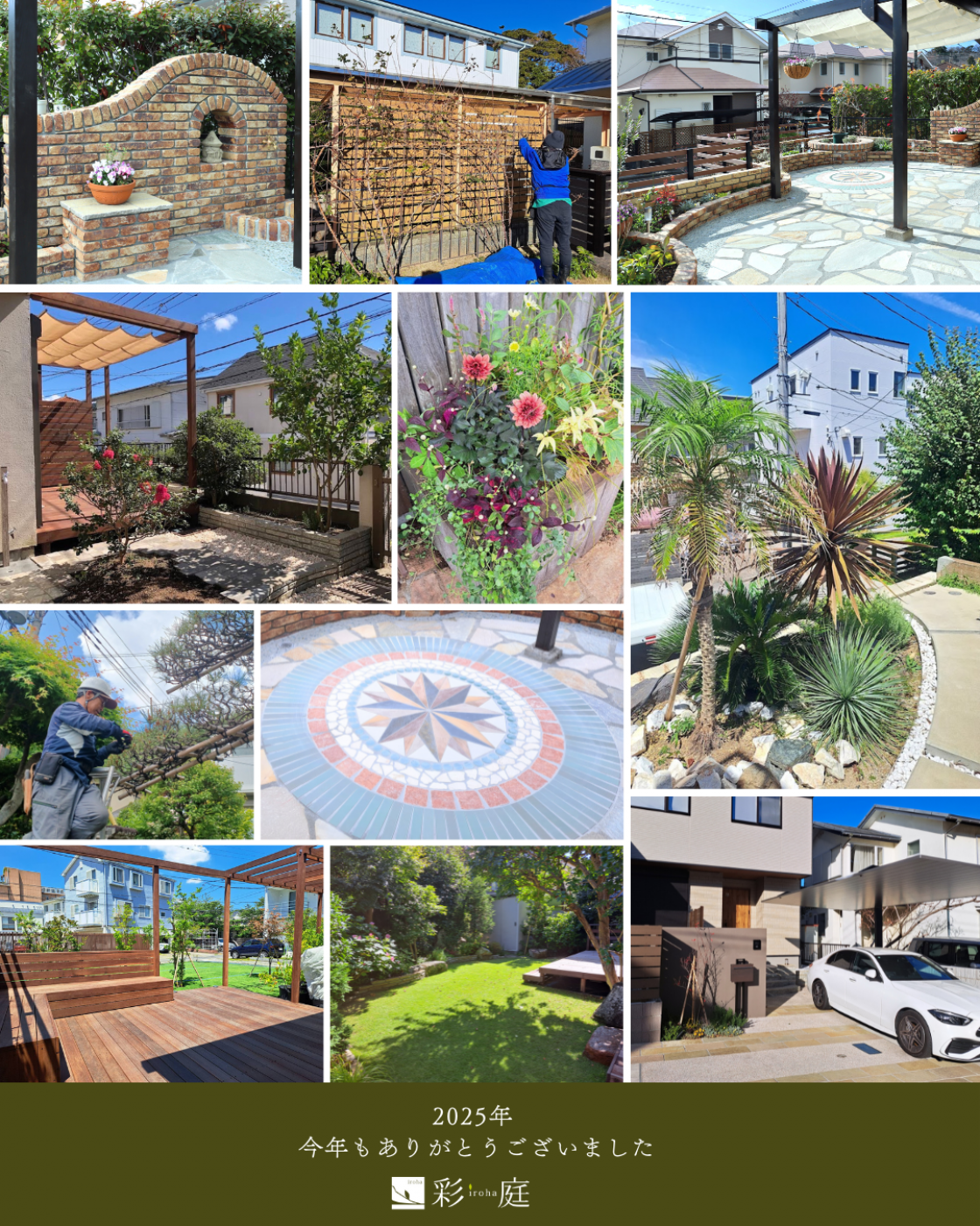 お知らせ NEWS 今年もお世話になりました 2025.12.29 お知らせ 今年も彩庭のホームページをご覧くださり、 また多くのご来店を戴きまして誠にありがとうございました。 お庭作りを通じてたくさんのお客様と出会えたことに スタッフ一同心より御礼申し上げます。 2026年もより皆様に喜んで頂けるようスタッフ一同精進して参りますので 来年もどうぞ宜しくお願い申し上げます。 今年も残すところわずかとなりましたが、皆様どうかお体にお気をつけて、 良い年末年始をお迎え下さいませ。 ※新年は 1月5日(月)より通常営業いたします。