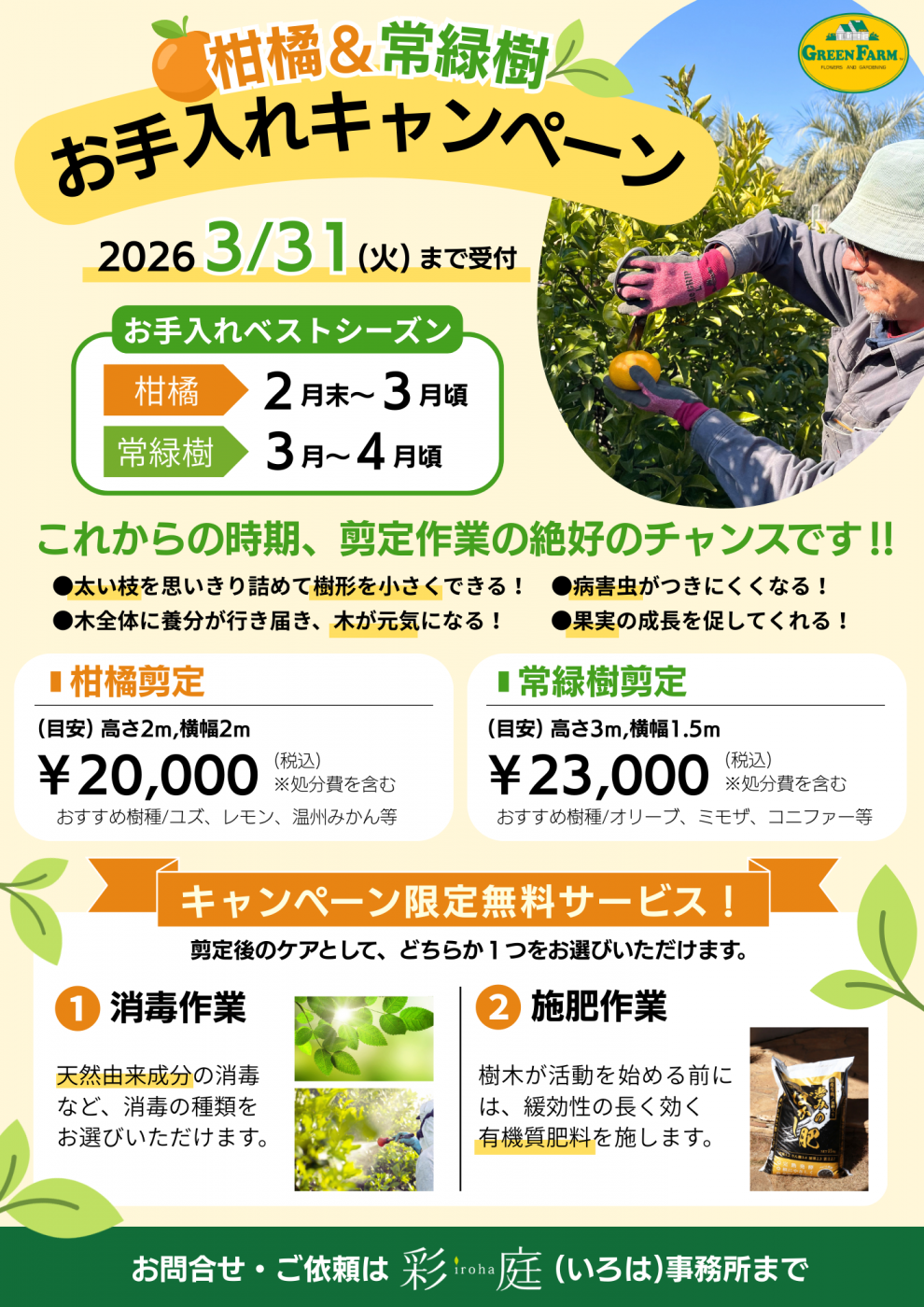 【実付き充実!元気にコンパクトに!柑橘&常緑樹のお手入れキャンペーン】を開催します!