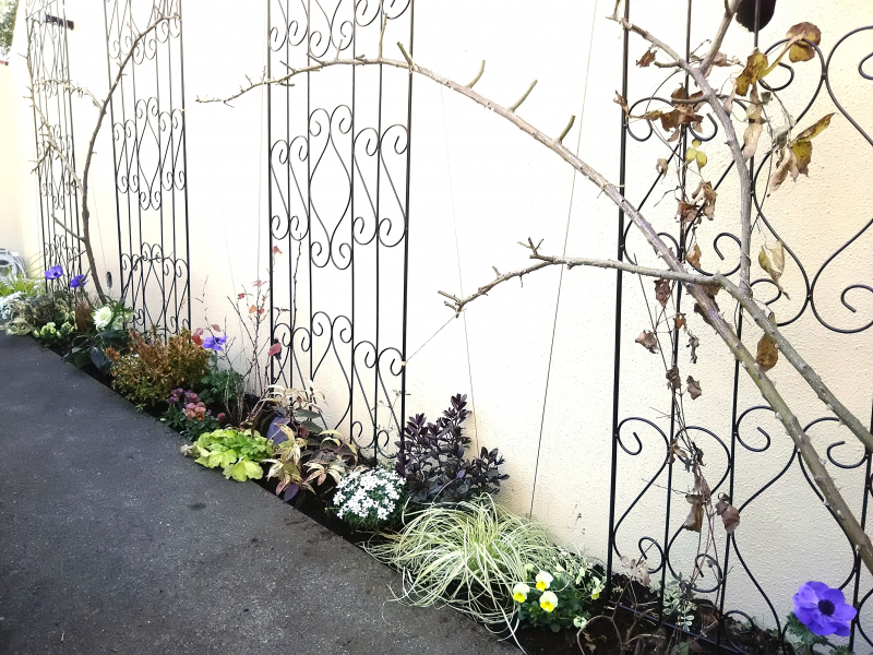 様々な植物が植えられていたスペースをバラをメインにした植栽にチェンジ。バラを引き立てる下草をご提案しました。