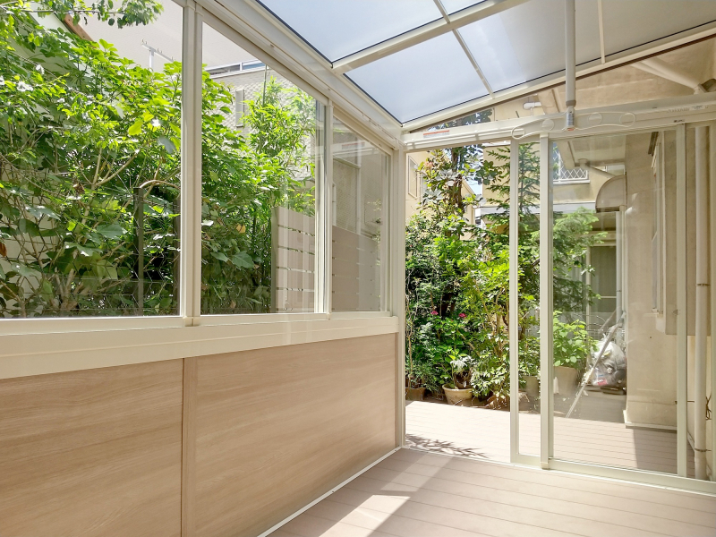 老朽化したウッドデッキスペースを有効活用すべくガーデンルーム(LIXIL GFシリーズ)を設置しました。